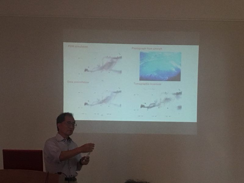 此次报告的主题为:Field Application of Coastal Acoustic Tomography (CAT),金子新教授是最早利用ADCP从事海洋观测的研究者之一,也是最先在世界上组织开发了沿岸海洋声层析系统装置,并展开了多次海洋观测实验,取得了丰硕的成果。报告上,金教授向大家简要介绍了沿海声层析系统装置的基本原理,主要讲述了该技术的应用领域并分享了自己近年的研究成果,最后他提出了对该技术的未来展望。