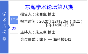 上一条:学院“揽月”教学沙龙第三期-一流课程申报专题辅导 下一条:东海学术论坛第七期-徐杰研究员学术报告