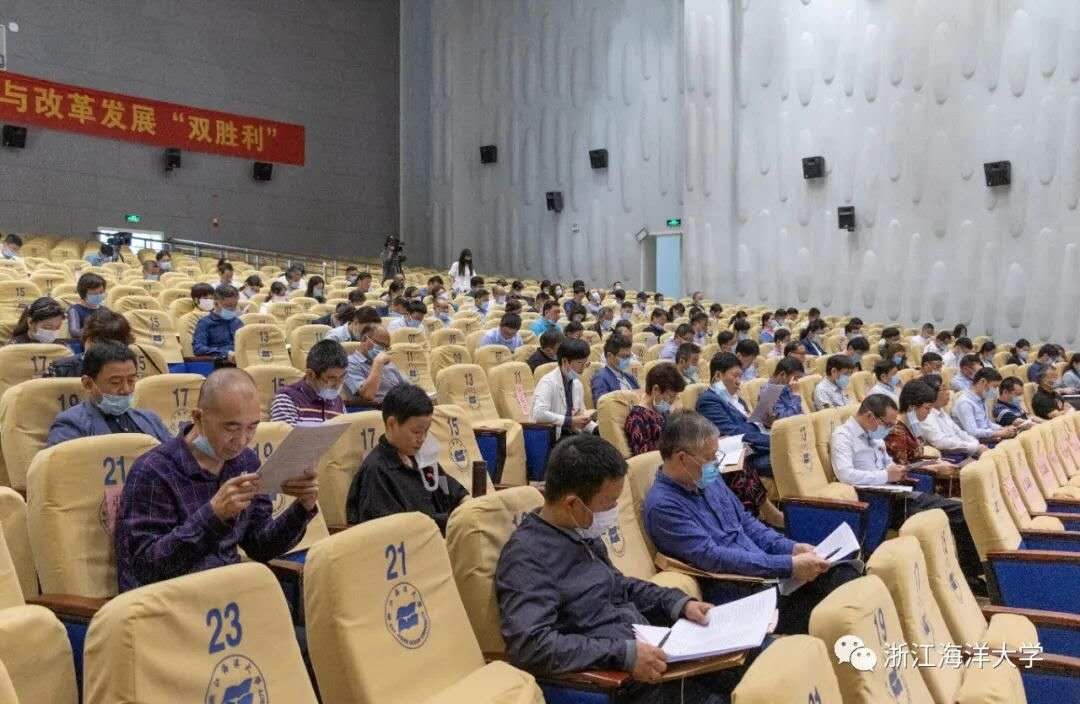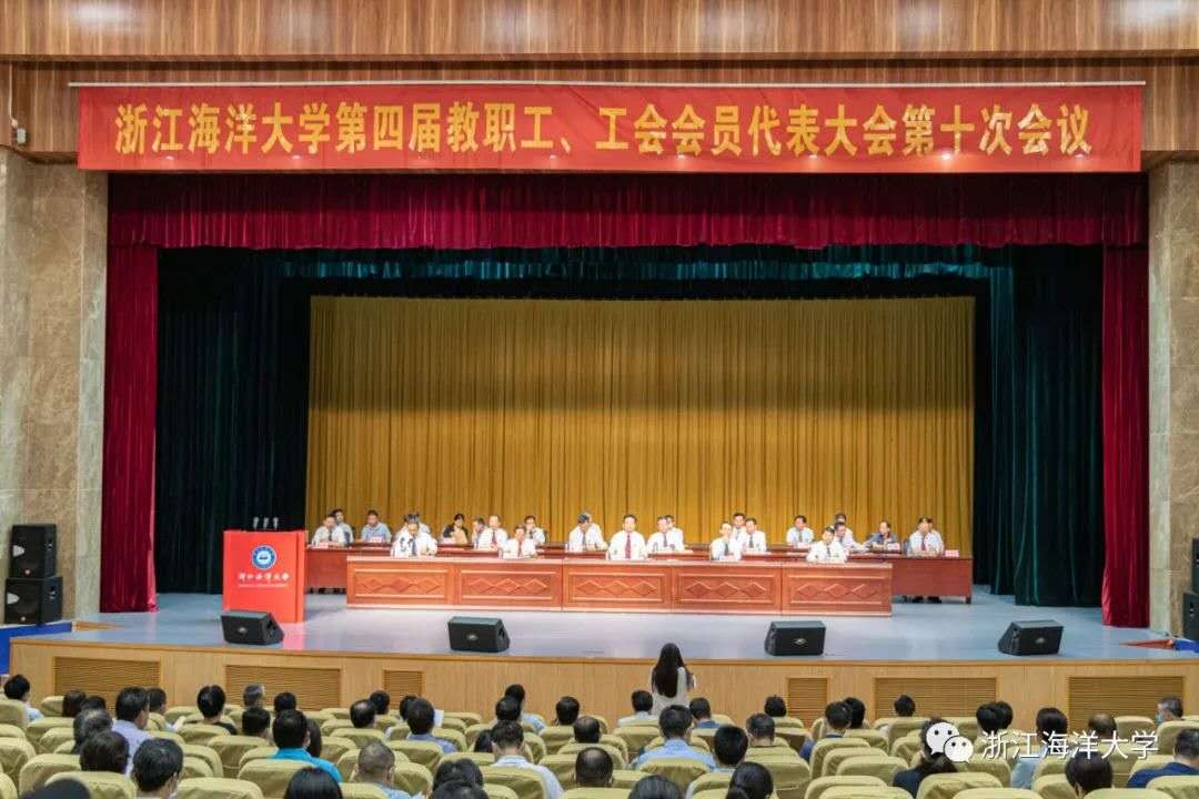 5月27日,浙江海洋大学第四届教职工、工会会员代表大会第十次会议在学校新城校区杨存国会展中心报告厅隆重举行,学校教代会正式代表出席大会。会议认真听取并审议了学校工作报告,书面审议了学校财务工作报告、工会工作报告、工会财务收支和经费审查报告、四届九次教代会提案办理情况报告以及2020年民生实事项目。