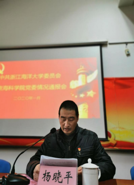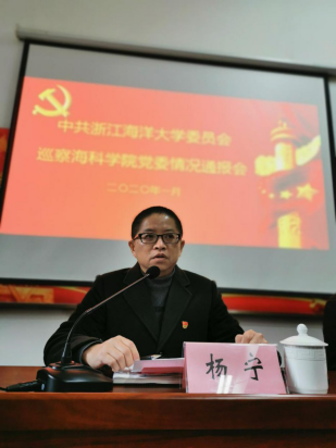 2020年1月8日上午,浙江海洋大学党委巡察组在海洋科学与技术学院召开巡察情况通报会。校纪委副书记、纪委办公室主任杨宁,校纪委委员、监察室主任、巡察组组长杨晓平,东海科学技术学院纪委书记、巡察组副组长夏志芳出席会议,学院党政领导班子成员、全体教职工参加会议。会议由学院院长左军成主持,党委书记穆军作表态性发言。