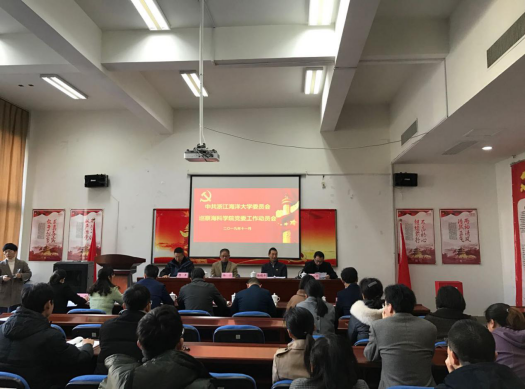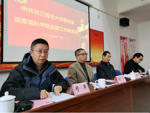 为深入推进全面从严治党工作,贯彻落实上级部署和要求,2019年11月28日上午,中共浙江海洋大学委员会巡察组到海洋科学与技术学院召开巡察工作动员会。浙江海洋大学纪委副书记、纪委办公室主任杨宁,校纪委委员、监察室主任、巡察组组长杨晓平,党委组织部副部长、巡察组副组长董学武,东海科学技术学院纪委书记、巡察组副组长夏志芳和党委办公室、纪委办公室、党委组织部、党委宣传部、审计处、食品与医药学院纪委等成员部门(单位)负责人出席动员大会。