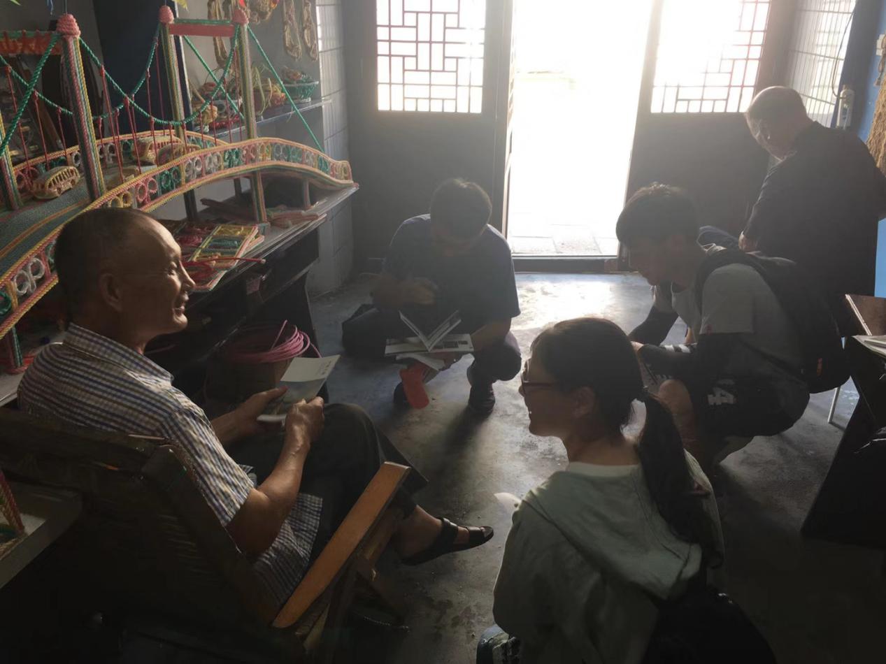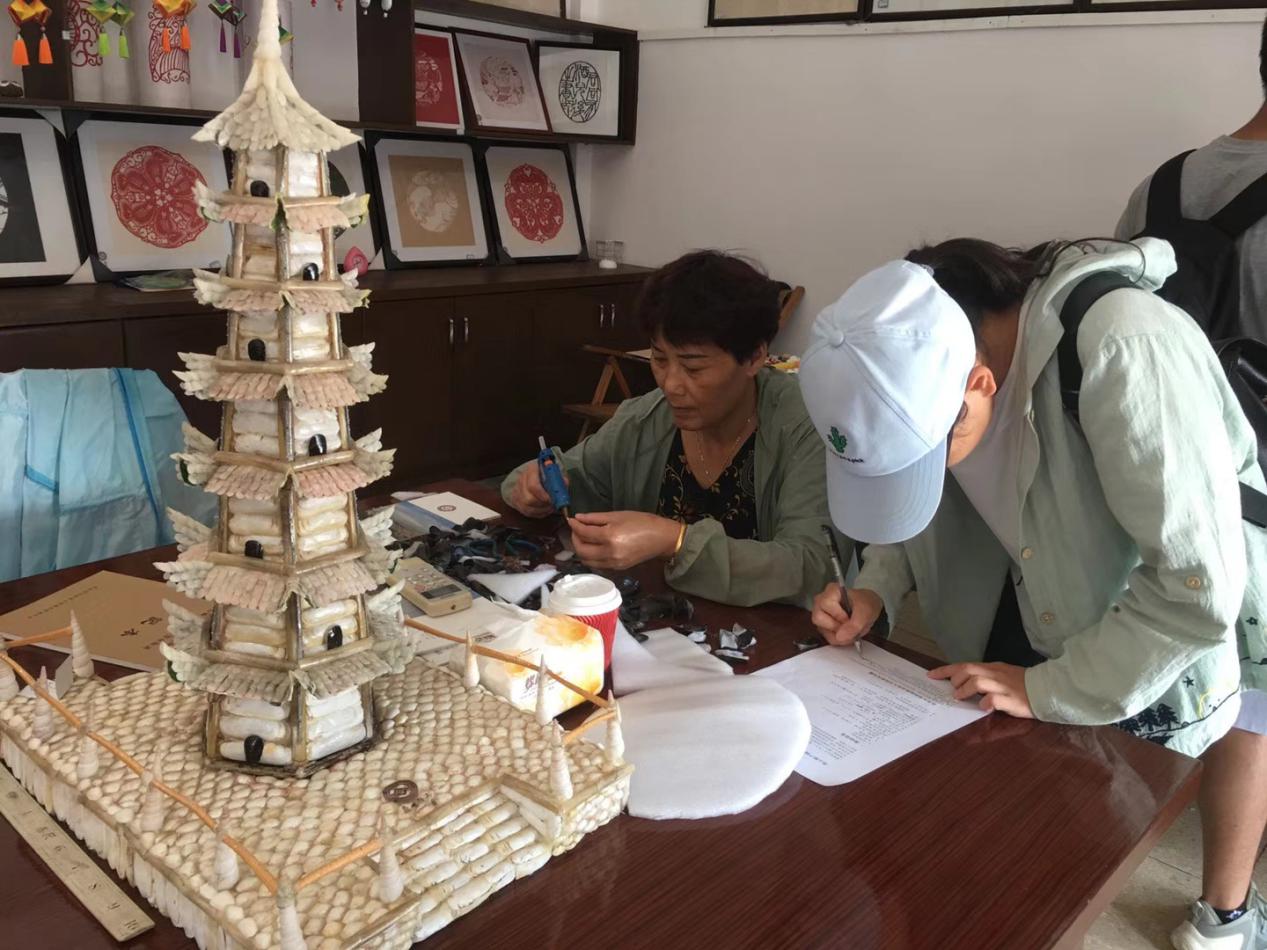 组二队员于上午十点到达岱山。本日该组调研由三场访谈组成。第一场是剪纸手工文化。老师傅带着徒弟将鱼皮鱼骨等制成手工作品。第二场是渔民技艺。师傅教队员如何将渔民打的绳结变为工艺品。这不仅是船老大的作品,更是渔民智慧的结晶。第三场访谈对象为休闲渔业老板。他认真回答了队员的问题,讲述了他初创业的艰辛,而后在政府支持下,将产业做的颇具规模的经历。他认为休闲渔业前景大好,希望能够得到政府更多的引导和援助,让岱山渔民齐心协力将休闲渔业做好做强。
