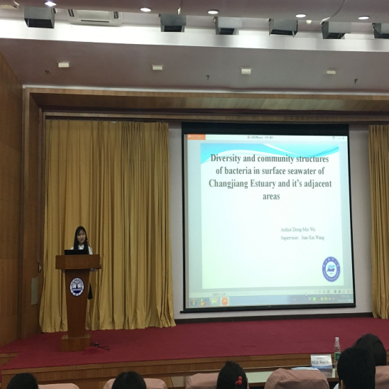 第三届“中日韩”研究生学术论坛于2016年9月23日—25日在大连举行。本次论坛由大连海洋大学主办,辽宁省海洋水产领域研究生创新与交流中心和大连海洋大学研究生院、水产与生命学院、国际交流与合作处、外国语学院联合承办。在研究生处副处长周学锋和学院石戈教授带队下,我校有24篇研究生论文被录用论坛论文集和做墙报展, Y15海洋科学专业的吴冬梅和项骁伟很荣幸的被邀请作英文报告。