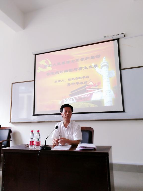 吴中平结合自己的学习、思考及工作体会,详细解读了十八届五中全会提出的“创新、协调、绿色、开放、发展”五大发展理念的主要内涵。他指出,五大发展理念集中反映了我们党对经济社会发展规律认识的深化,极大丰富了马克思主义发展观,为我们党领导全国人民夺取全面建成小康社会决战阶段的伟大胜利,不断开拓发展的境界提供了强大思想武器。