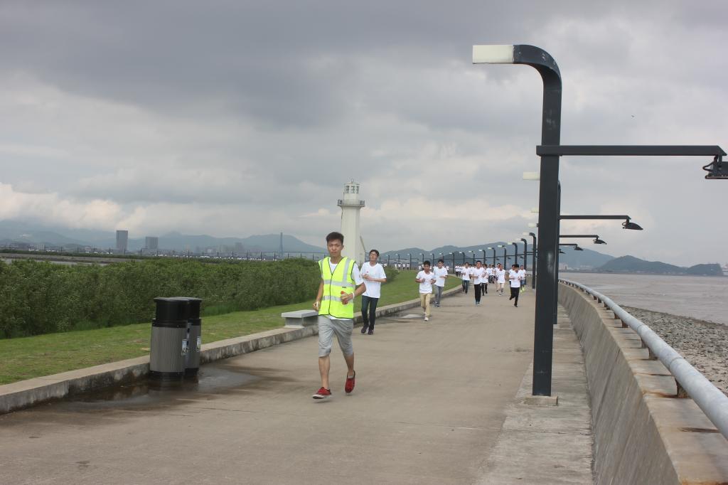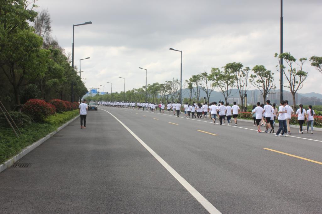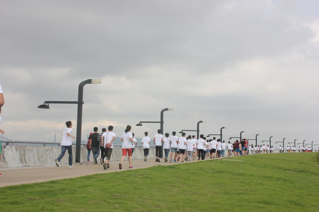 慢跑长龙在揽月湖堤坝