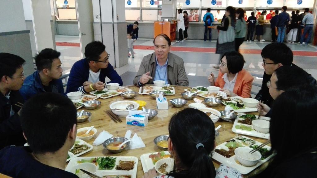 “五四”前夕,吴校长在学校食堂与海科青年学子共进晚餐,共话青春。