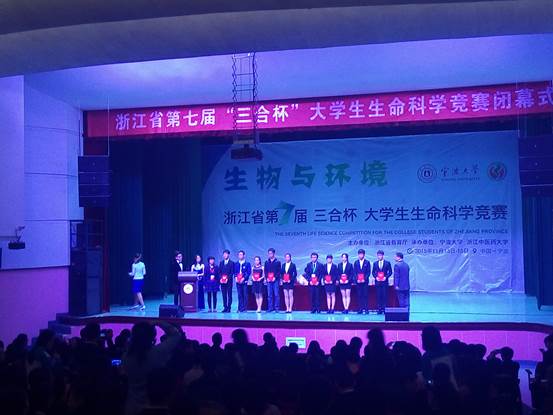 11月13日-15日,浙江省第七届大学生生命科学竞赛决赛在宁波大学隆重进行。经过材料评审、现场答辩等环节的激烈角逐,来自海洋科学与技术学院的Dream Fighters(参赛学生:关夏勇、赵松婷等,指导老师:陈庆国老师),Purists(参赛学生:刑宇、刘嘉炜等,指导老师:蔡惠文),V get(参赛学生:刘嘉佩、黄洁丽等,指导老师:刘雪珠),亮剑(参赛学生:谢斐昂、李亚东等,指导老师:崔大练、马玉心),Createam(参赛学生:顾得月、袁翼等,指导老师:刘雪珠) 等5支团队荣获二等奖,另外,由刘慧慧、樊英萍、郭宝英和祁鹏志等老师指导的3支团队获得本届大赛的三等奖。