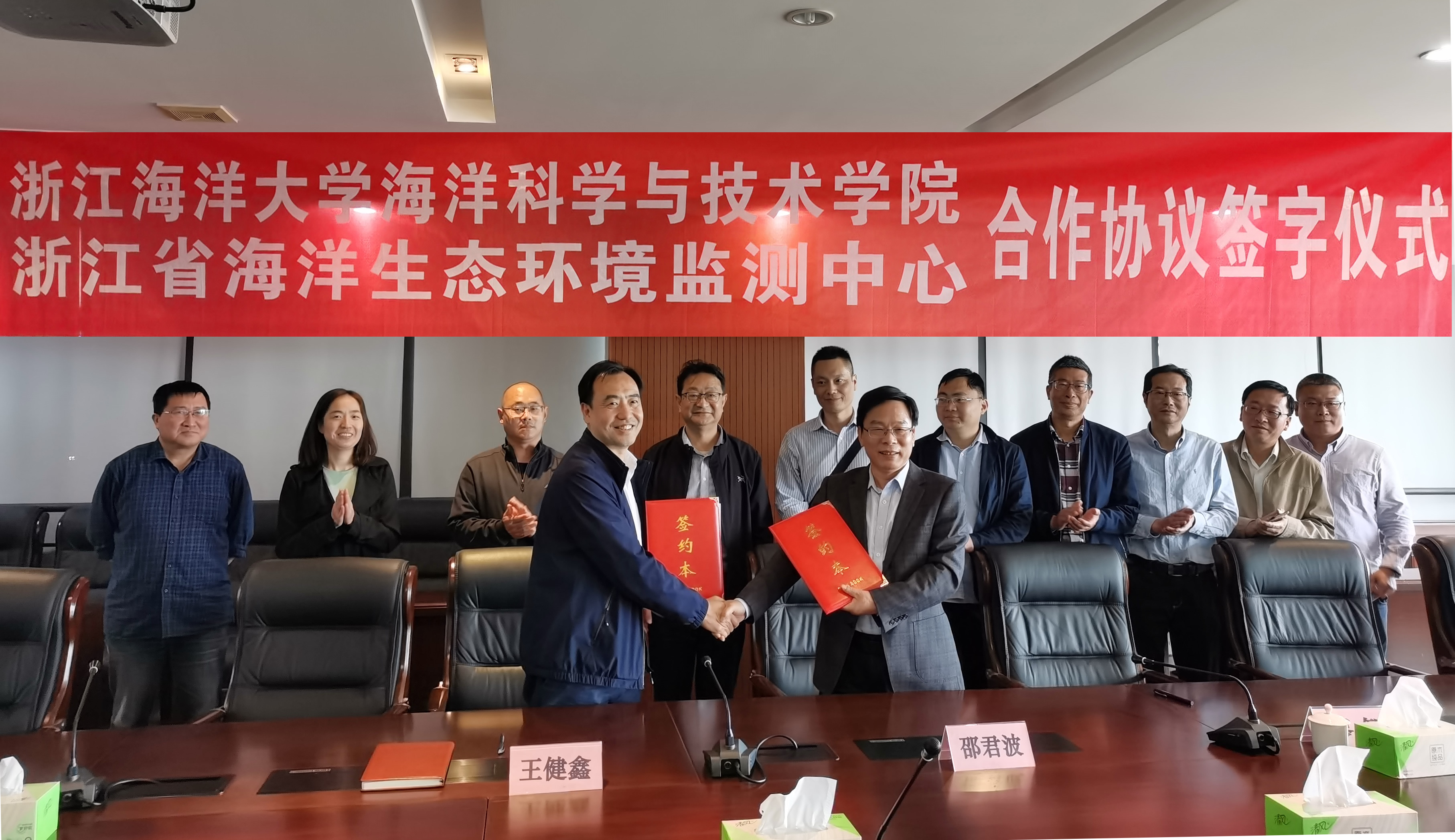 为深化院地合作交流,提升科技创新能力,5月18日下午,海洋科学与技术学院与浙江省海洋生态环境监测中心举行双方深化全面合作协议签约仪式。监测中心主任邵君波、副主任唐静亮、总工王益鸣及相关业务科室负责人,学院院长王健鑫、院长助理廖智和各系主任出席了签约仪式。