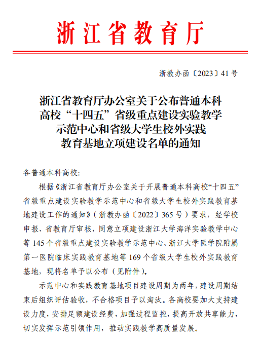 近日,浙江省教育厅公布了“十四五”省级大学生校外实践教育基地建设项目名单,澳门彩