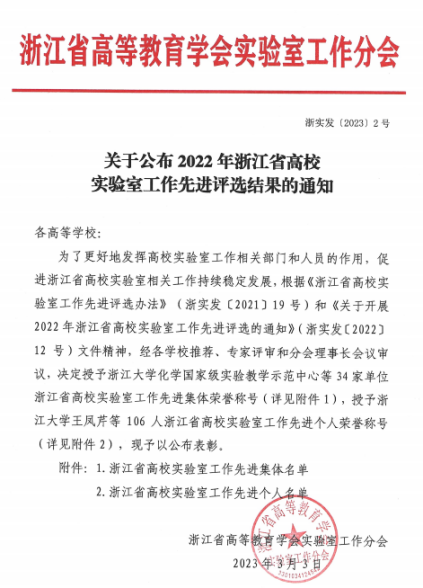 近日,浙江省高等教育学会实验室工作分会发布了《关于公布2022年浙江省高校实验室工作先进评选结果的通知》,对全省各高校在实验室管理等方面涌现出的先进集体和个人进行表彰。澳门彩