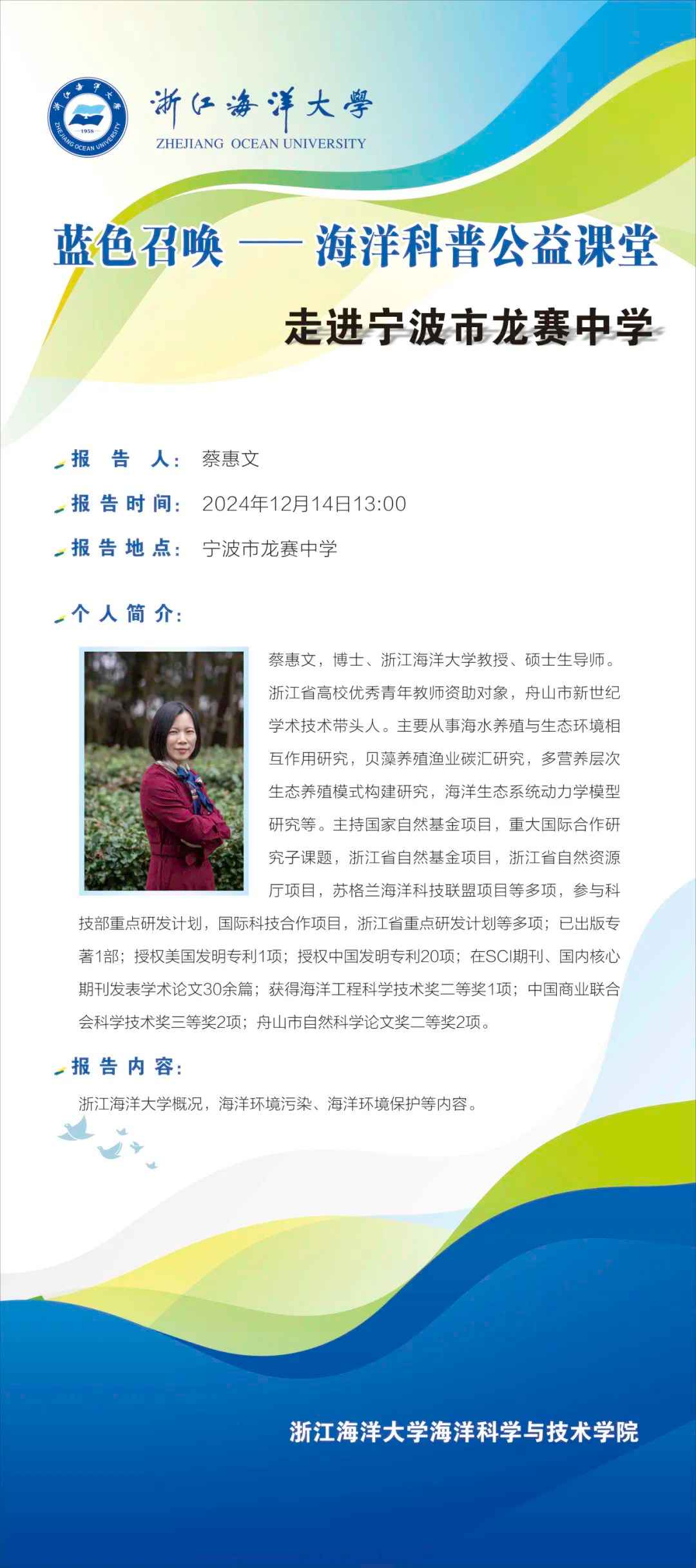 12月14日下午,浙江海洋大学“蓝色召唤——海洋科普公益课堂”走进宁波市镇海区龙赛中学。本次讲座由澳门彩-澳门六合彩开彩结果