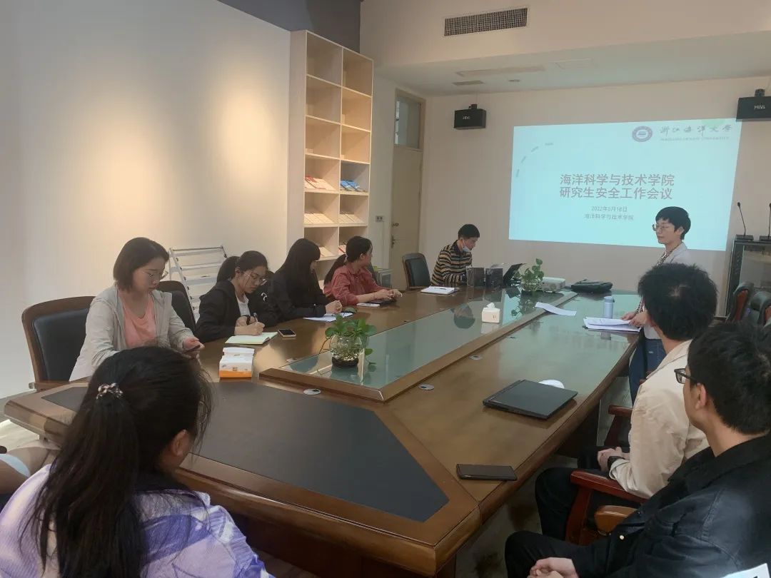 为贯彻落实浙江海洋大学疫情防控工作要求和相关会议精神,5月18日,海洋科学与技术学院在海科楼146会议室举行了研究生安全工作会议。学院党委副书记兼纪委书记何桂明、学工办菅康康老师、王立超老师、研究生班干部以及研究生会代表参加了此次会议并做好笔记。会议由何桂明副书记主持。
