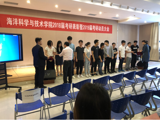 大会上学院党委书记穆军教授对考研成功的同学们表示祝贺并祝愿大家在未来的工作中和学习上再创佳绩,之后学院领导和老师为同学们颁发奖励、证书,合影留念。紧接着由14级和15级学生代表上台发言,他们朴实而积极向上的考研感悟赢得了热烈的掌声。最后,毕业班班主任代表胡海燕老师为同学们做了一场深刻而诚挚的考研讲座,并祝愿海科学子们以学长学姐为榜样,努力学习,再创佳绩。