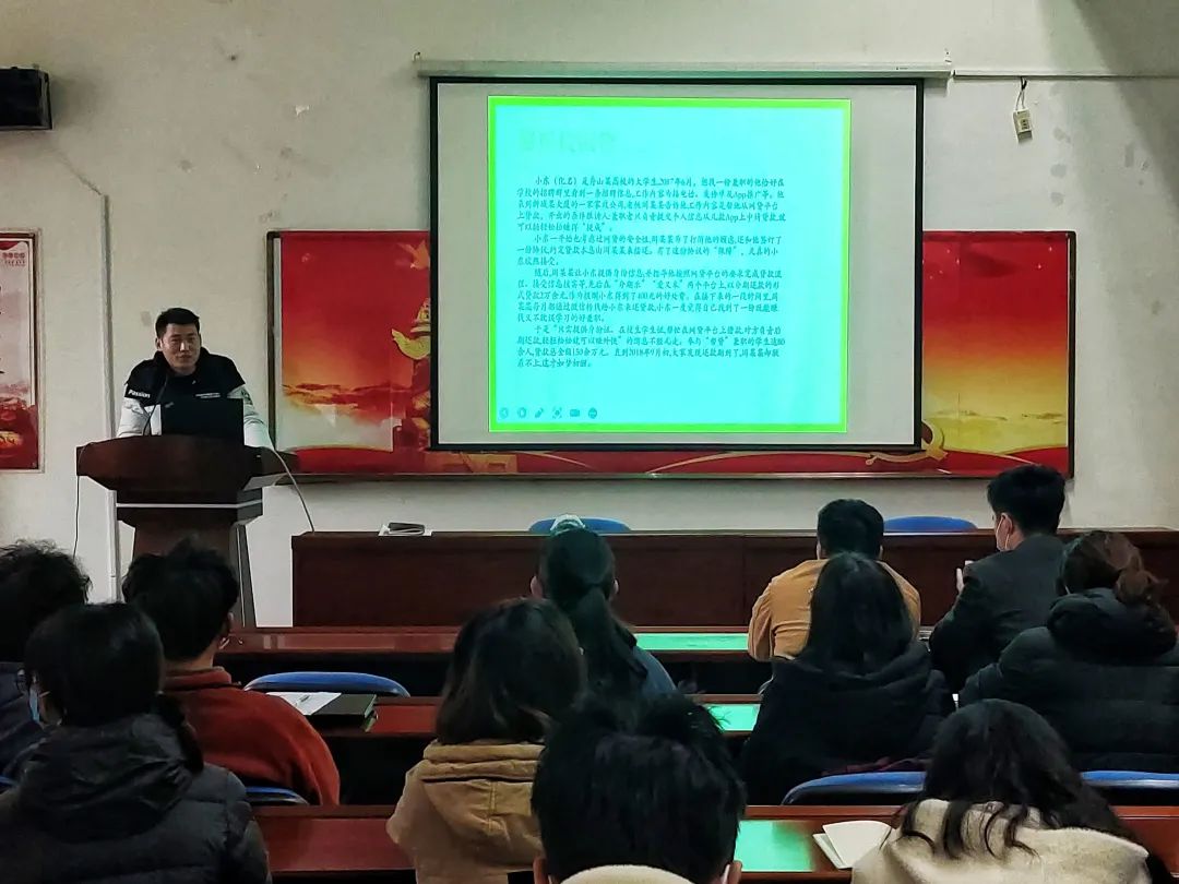 安全教育是一个永久的话题,安全应当牢牢的记在心中。事故的教训是深刻的,事故的代价也是非常高昂的。菅康康老师就开学之后的安全工作进行安排和简要总结,强调在现代的大学生群体中,每年都会发生一系列的安全事故和诈骗事故,造成大学生们的生命和财产损失。因此,学院尤其提醒,谨防电信诈骗注意网络安全,按时返校不逗留,警惕校园贷陷阱,各班安全委员需要尽职尽责做到信息及时上传下达。