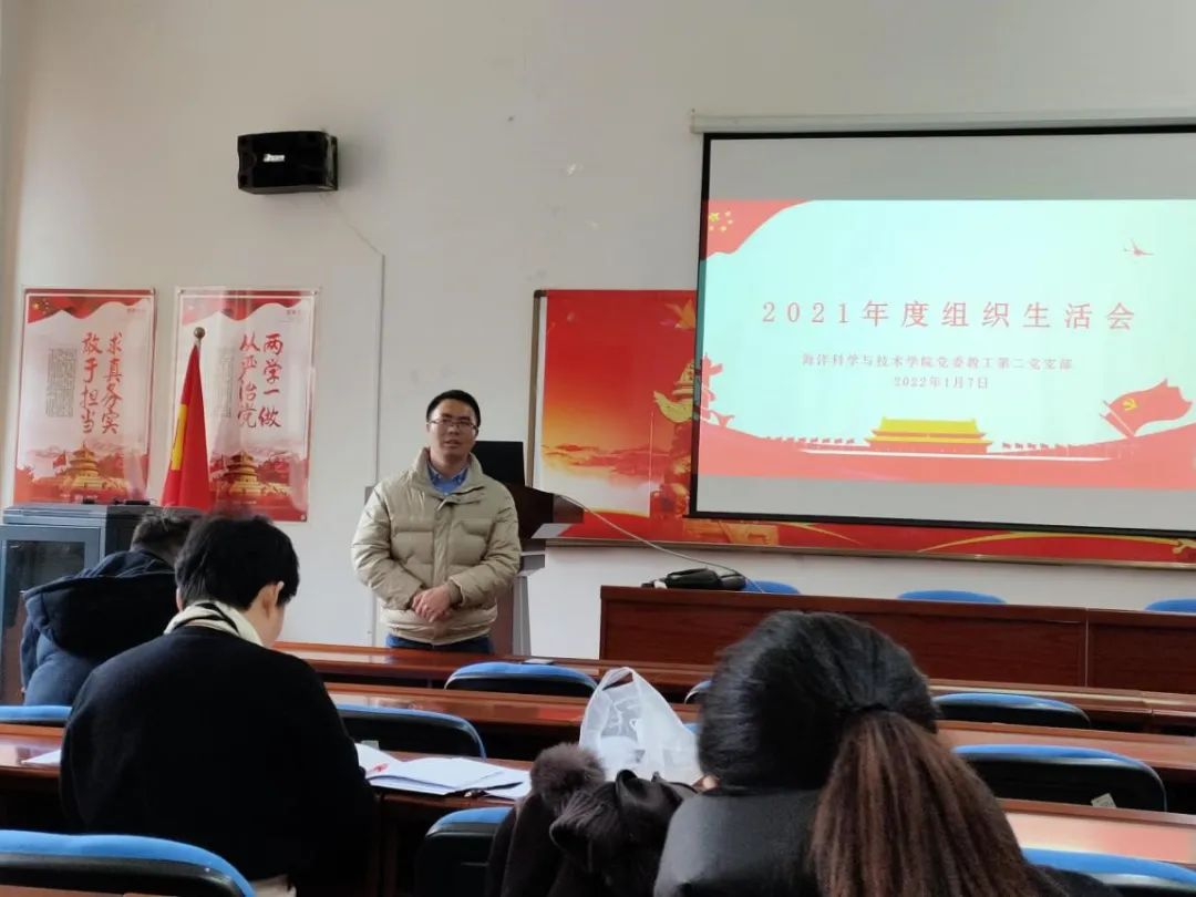 为大力弘扬伟大建党精神,坚持和发展党的百年奋斗历史经验,进一步加强基层党支部建设,提高党员政治能力和基层党建工作水平,2022年1月7日中午,教工第二党支部在海科楼141会议室召开了本年度的党史学习教育专题组织生活会。会议由党支部书记龚理同志主持,支部二十余位党员参加了本次组织生活会。