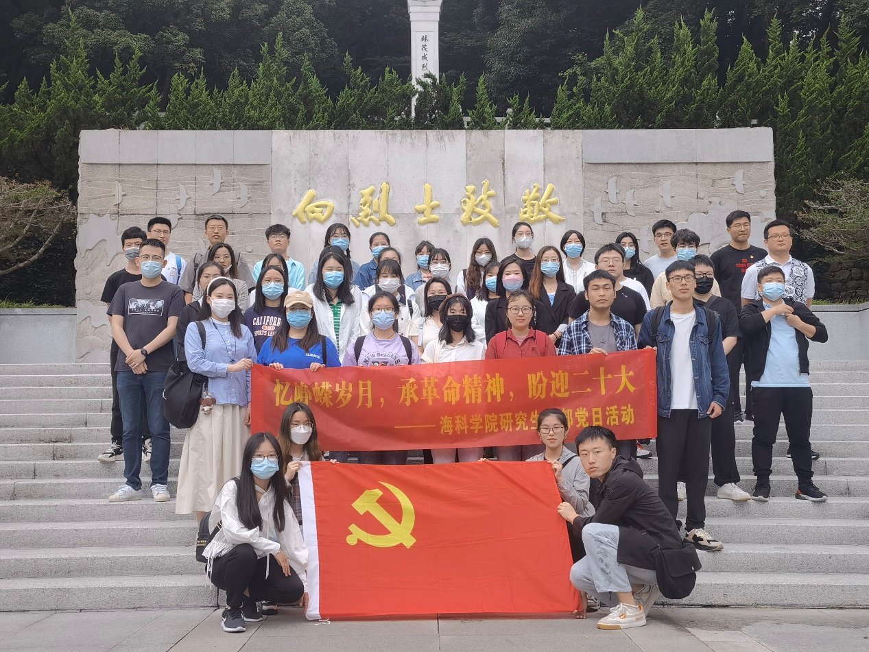 为教育党员继承革命先烈的光荣传统,弘扬民族精神,激发党员爱党、爱国的热情,6月12日,海洋科学与技术学院50余名研究生党员赴舟山市定海区开展“忆峥嵘岁月,承革命精神,盼迎二十大”主题党日活动。