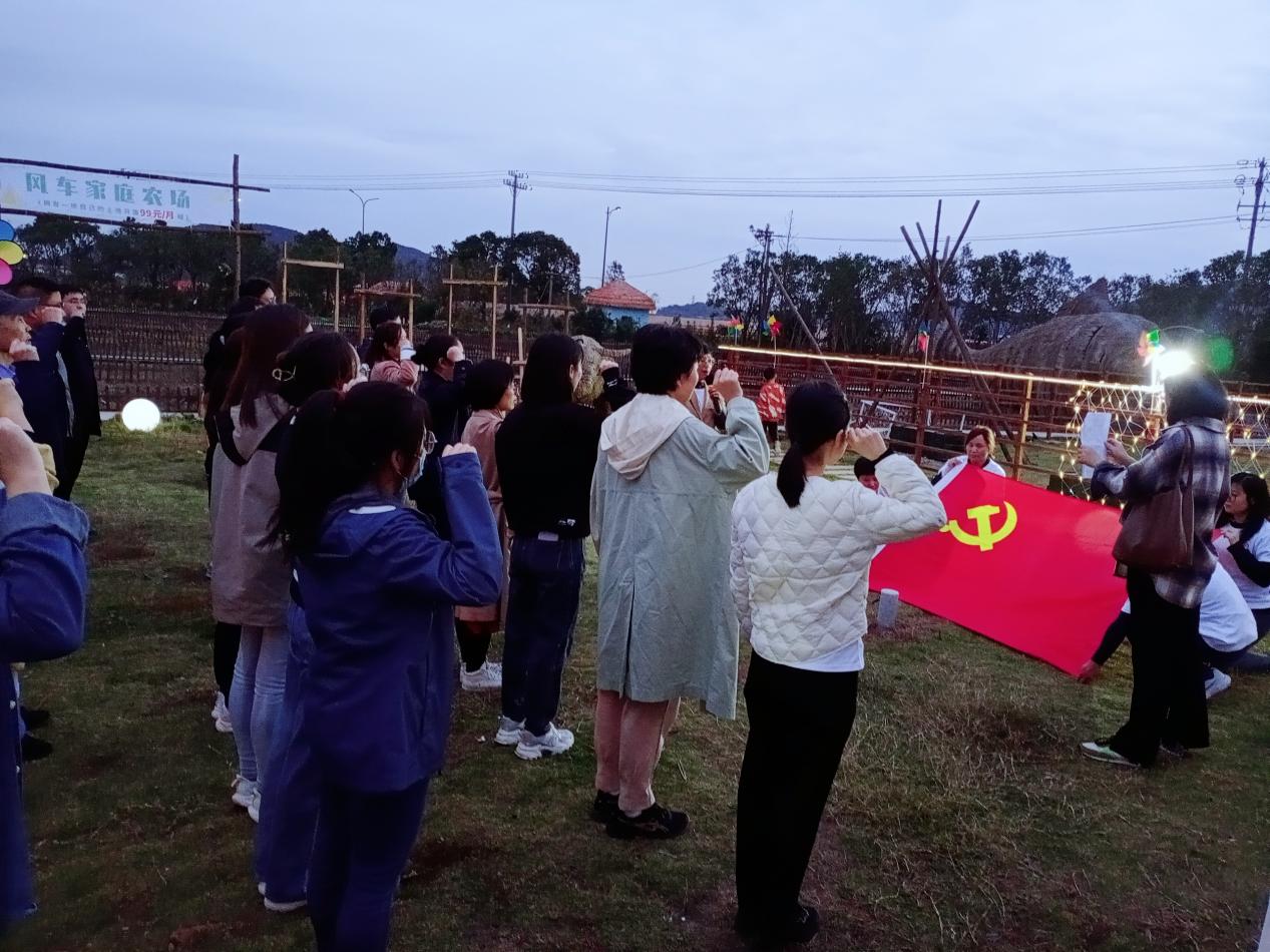 在马岙风车基地,全体党员佩戴党徽,面对鲜红的党旗,举起右手庄严宣誓,一起重温了入党誓词。铿锵有力的宣誓声诠释着大家不变的初心和坚定的信念。随后的创意舞蹈、鼓动人心、红歌对唱等党建趣味活动,让党员们在轻松愉快的氛围中传递昂扬向上的精神状态,展⽰了党员⼲部团结协作的精神风貌,增强了组织的凝聚力和向心力。