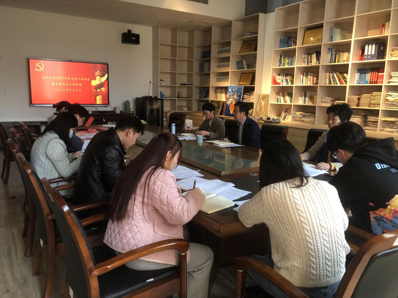召开2023年度党建工作会议暨支部书记工作例会,贯彻落实学校2023年党建工作会议精神,总结学院2022年党建工作,部署2023年党建任务。学院党委书记林增丰主持会议,党委副书记何桂明以及组织委员、组织员、各党支部书记参加会议。