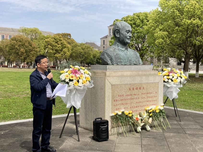65年前,以李星颉先生为代表的18位心怀梦想、酷爱海洋的学者,放弃繁华都市的优越条件,来到东海之滨的这座岛城,创建起舟山历史上第一所高等学府——舟山水产学院。自此以后,李星颉先生心无旁骛、扎根海岛、艰苦创业,长期专注于海洋水产领域的教学和科研工作,为我国海洋事业培养了大批优秀人才、留下了大量宝贵财富。仪式中,李星颉家属、师生党员代表、A21海科星颉班代表向李星颉先生献花。接着,A21海科星颉班郭振扬作为星颉实验班学生代表发言,他表示要以老一代海洋先驱为榜样,学习他们身上宝贵的海洋人精神,并传承下去!之后,全体师生党员重温入党誓词。
